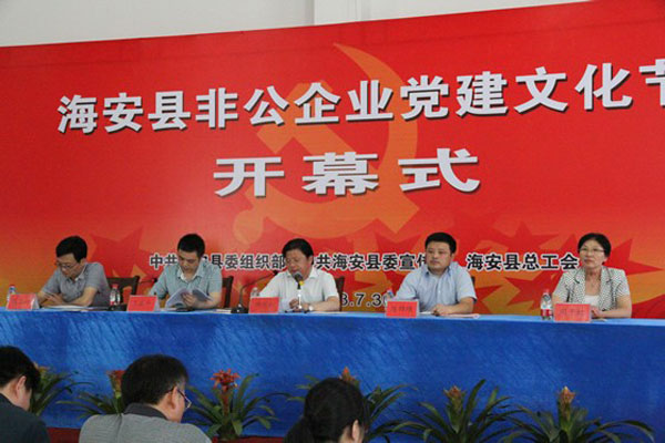 目前,我縣共有非公企業(yè)2998家,從業(yè)人員14.9萬(wàn)人,非公企業(yè)黨組織總體組建率達(dá)98.6%。近年來(lái),我縣不斷探索創(chuàng)新非公企業(yè)黨建文化工作,548家規(guī)模企業(yè)提煉形成獨(dú)特的企業(yè)精神,46家企業(yè)創(chuàng)辦內(nèi)刊,《中洋報(bào)》被評(píng)為省十佳企業(yè)期刊,《海迅之歌》被評(píng)為省十大企業(yè)金曲,并打造了海迅集團(tuán)“家”文化,鑫緣集團(tuán)“精品人品同在,誠(chéng)信創(chuàng)新永恒”價(jià)值觀等一批黨建文化品牌。雙弘紡織黨支部被表彰為全國(guó)創(chuàng)先爭(zhēng)優(yōu)先進(jìn)基層黨組織,海安高新區(qū)等被表彰為省“四統(tǒng)籌一創(chuàng)爭(zhēng)”示范單位。