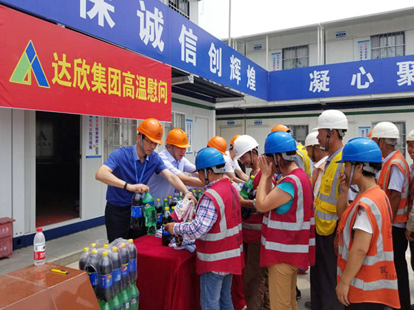 在項(xiàng)目部,集團(tuán)公司領(lǐng)導(dǎo)將人丹、花露水、雪碧等防暑降溫用品發(fā)放給每一位職工,同時(shí)叮囑大家夏季高溫作業(yè)時(shí),注意防暑降溫。另外,員工養(yǎng)成良好的生活衛(wèi)生習(xí)慣,不疲勞上崗、不帶不良情緒上崗,以良好的精神狀態(tài)上好班。