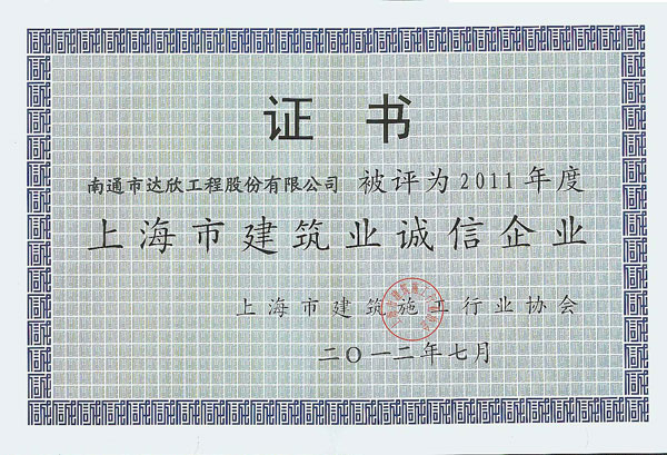 根據(jù)《上海市建筑施工企業(yè)誠信建設(shè)行業(yè)評價(jià)試行辦法》和《上海市建筑施工企業(yè)綜合實(shí)力排名辦法》、2011年度企業(yè)誠信建設(shè)相關(guān)考核、《指標(biāo)體系及評分標(biāo)準(zhǔn)》等內(nèi)容,第一工程公司在經(jīng)過申報(bào)、初審、征詢主管部門意見、上網(wǎng)公示四個(gè)環(huán)節(jié)后,最終由上海市建筑施工企業(yè)誠信建設(shè)行業(yè)評價(jià)委員會審定通過,榮獲2011年度“上海市建筑業(yè)誠信企業(yè)”稱號。這是達(dá)欣股份自易名以來連續(xù)五年獲此殊榮。此外公司還被評為2011年度“上海市建筑施工企業(yè)綜合實(shí)力進(jìn)步獎(jiǎng)”稱號,承建的萬寶國際廣場項(xiàng)目榮獲2011年度上海市“白玉蘭”優(yōu)質(zhì)工程。