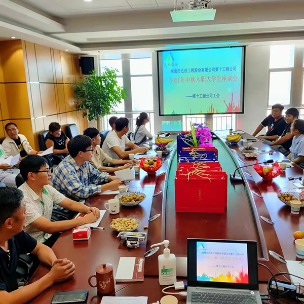 為進一步了解、關(guān)愛大學(xué)生思想動態(tài)和需求,9月8日,第十工程公司舉行“迎中秋,大學(xué)生座談會”。公司副總經(jīng)理陳廣興、工會主席曹伍群、技術(shù)總工李鐵橋等領(lǐng)導(dǎo)及18名大學(xué)生參加了座談會,會議由工會主席曹伍群主持。