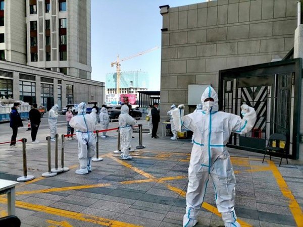 近日,烏魯木齊市米東區(qū)出現(xiàn)了疫情反撲,全市開展為期14天的每日核酸檢測(cè)。會(huì)展社區(qū)在建項(xiàng)目多,流動(dòng)人口多,檢測(cè)點(diǎn)多且面廣,社區(qū)工作人員工作量驟增。十一分隊(duì)吾悅廣場(chǎng)項(xiàng)目青年志愿者們得知后,立即行動(dòng)。有的協(xié)助測(cè)溫、有的維護(hù)現(xiàn)場(chǎng)秩序,現(xiàn)場(chǎng)秩序井然。