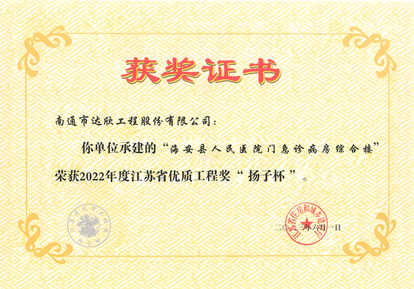 近日,江蘇省住房和城鄉(xiāng)建設(shè)廳公布了2022年度江蘇省優(yōu)質(zhì)工程獎(jiǎng)“揚(yáng)子杯”獲獎(jiǎng)名單,第一工程公司承建的海安市人民醫(yī)院門急診病房綜合樓項(xiàng)目榜上有名。
