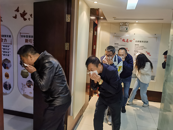 本次演練由滅火行動組(質(zhì)量安全部門)、通信聯(lián)絡組(辦公室)、疏散引導組(核算部門)、安全防護救護組(財務部門)組成,陳元國為現(xiàn)場執(zhí)行指揮。他強調(diào),一是牢記疏散路線,清楚安全出口和通道位置,不乘電梯、不貪戀財物;二是熟練使用消防器材,掌握滅火器和消防栓操作;三是強化應急意識,發(fā)現(xiàn)火情及時報警并報告物業(yè)安保,做到“早發(fā)現(xiàn)、早報警、早處置”。在大家配合下,演練圓滿完成。