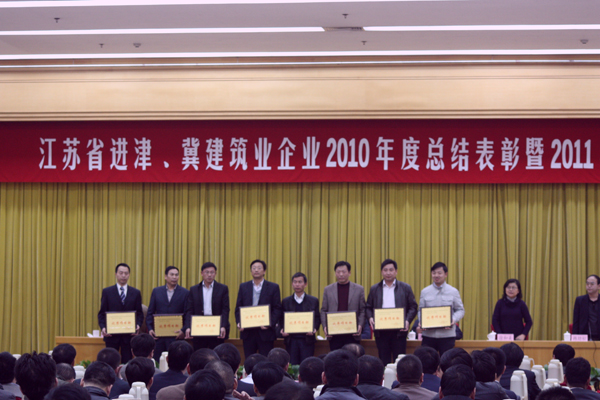 2011年3月20日,江蘇省進(jìn)津、冀建筑業(yè)企業(yè)2010年度總結(jié)表彰暨2011年工作大會(huì)在天津大禮堂隆重召開。大會(huì)由江蘇省建設(shè)廳駐天津辦事處副主任韓勁松主持,主任鄧福林作了“搶抓新機(jī)遇,謀劃新發(fā)展,不斷開創(chuàng)江蘇建筑業(yè)新局面”的工作報(bào)告,對(duì)2010年的工作進(jìn)行回顧,并提出2011年工作目標(biāo)任務(wù)。江蘇省建筑工程管理局副局長(zhǎng)紀(jì)迅、天津市外地施工隊(duì)伍管理站站長(zhǎng)吳海、江蘇省住房和城鄉(xiāng)建設(shè)廳監(jiān)察室主任王毅、計(jì)劃賬務(wù)處調(diào)研員徐和美等江蘇省、天津市的主管部門領(lǐng)導(dǎo)應(yīng)邀出席了會(huì)議,紀(jì)迅局長(zhǎng)、吳海站長(zhǎng)作了重要講話。