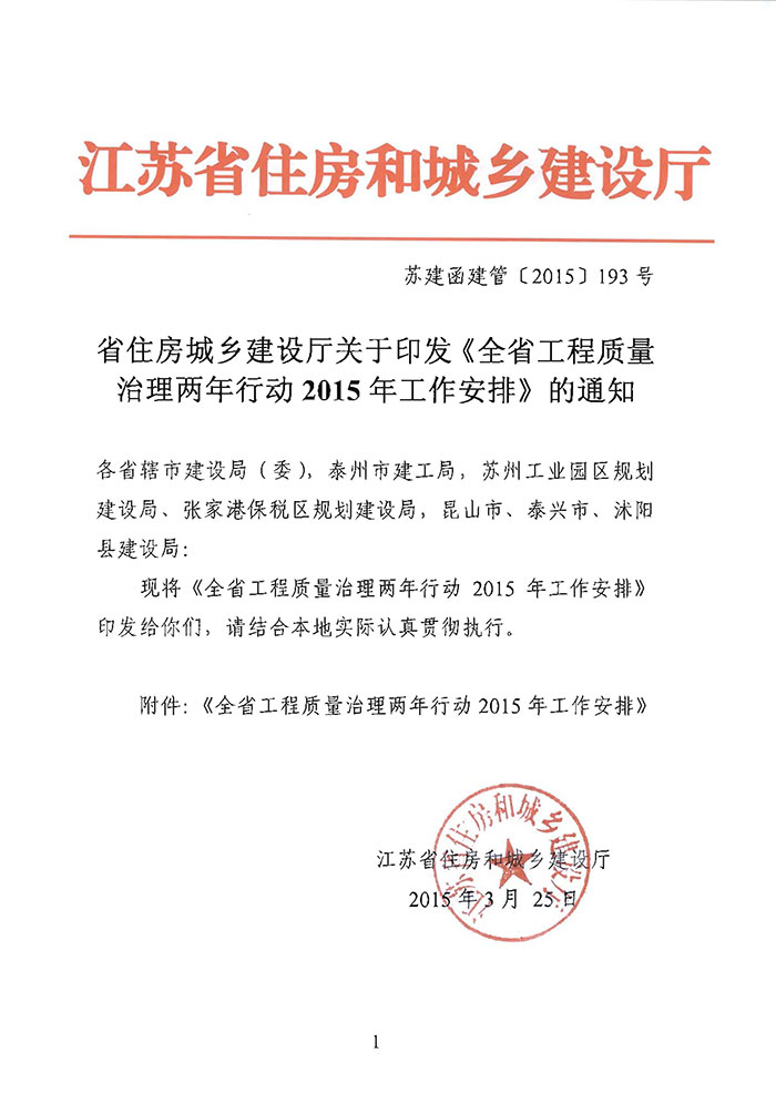 省住房城鄉(xiāng)建設(shè)廳關(guān)于印發(fā)《全省工程質(zhì)量治理兩年行動(dòng)2015年工作安排》的通知
